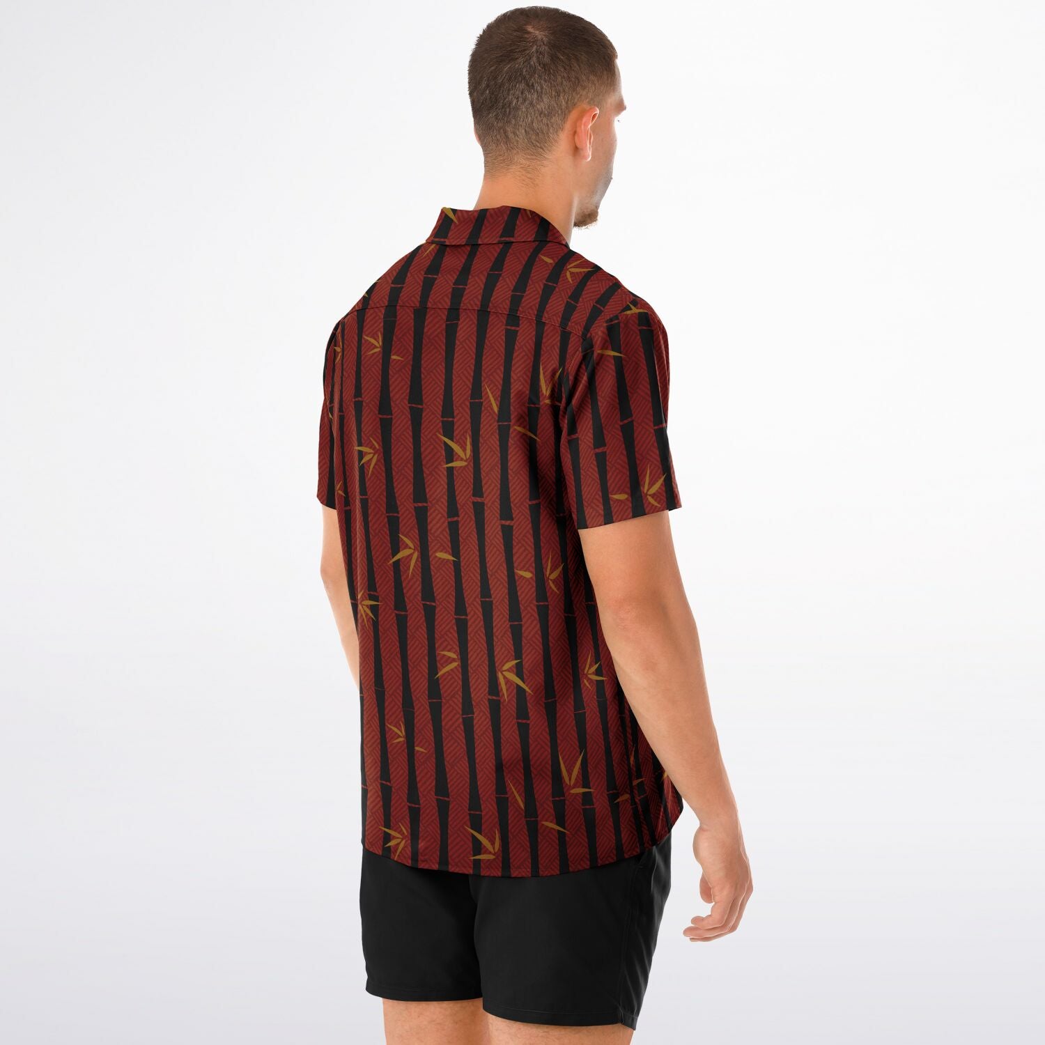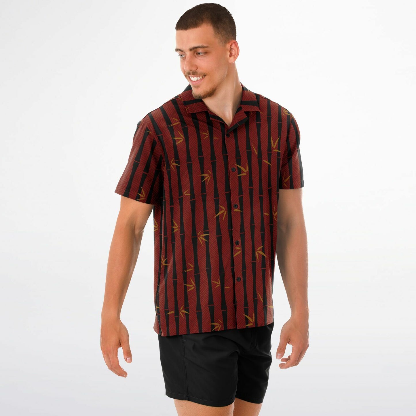 Add a touch of quirky style to your wardrobe with the 'Bamboo Black' Short Sleeve Button-Down Shirt. Featuring a unique bamboo pattern, this classic style is perfect for backyard tiki bar lounging.