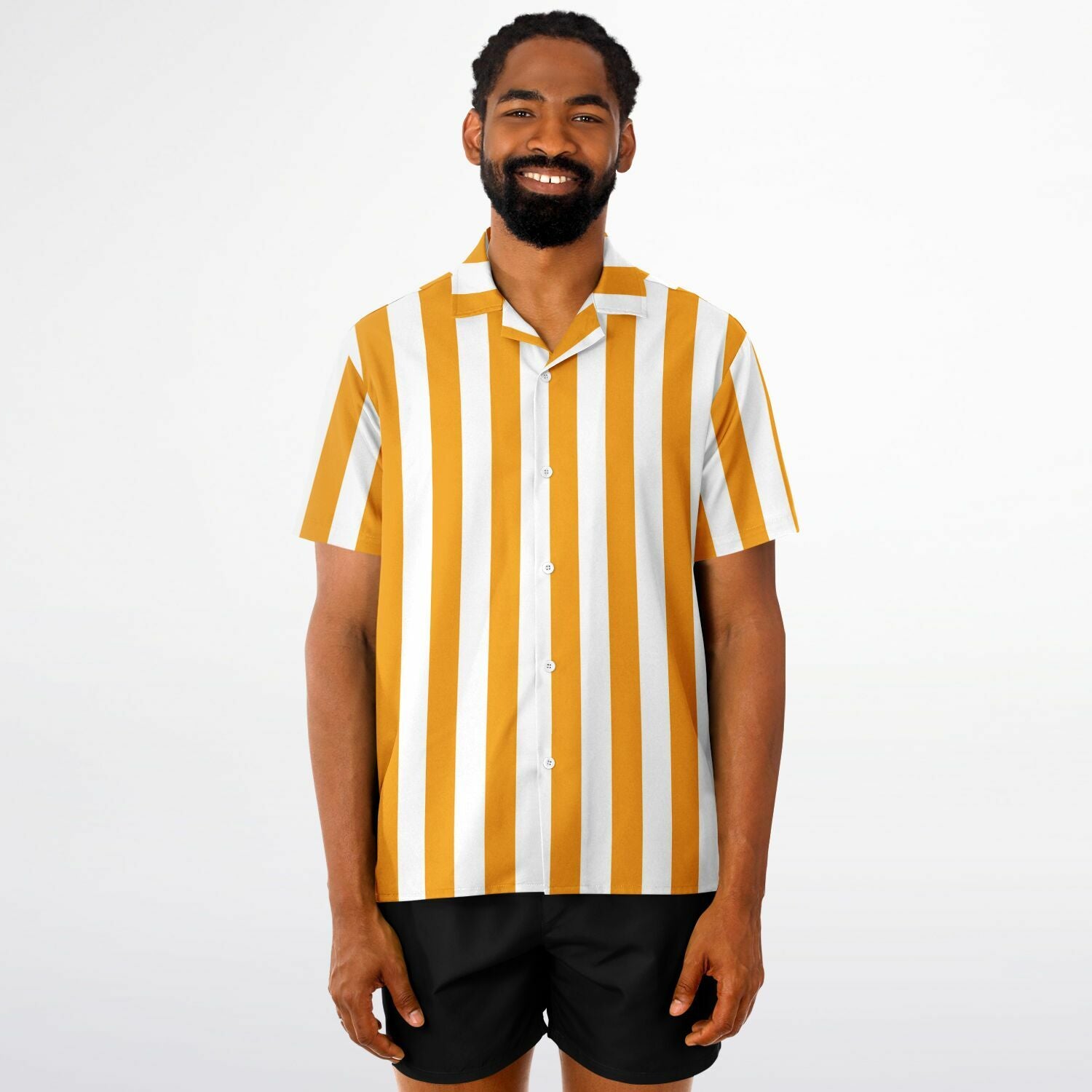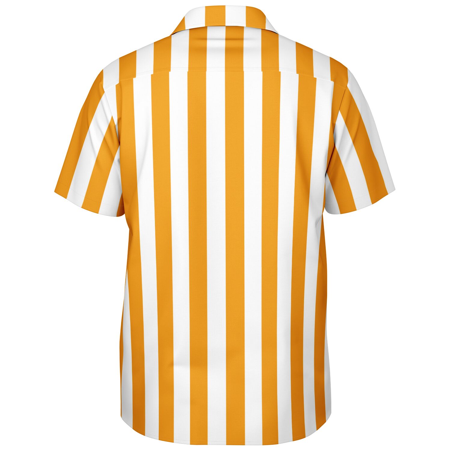 Get ready for some fun in the sun with the 'Beachboy Orange' Striped Short Sleeve Button-Down Shirt. This playful shirt is perfect for those beach days and summer adventures. Stay cool and stylish while making memories and having good times. (No more boring button-downs!)