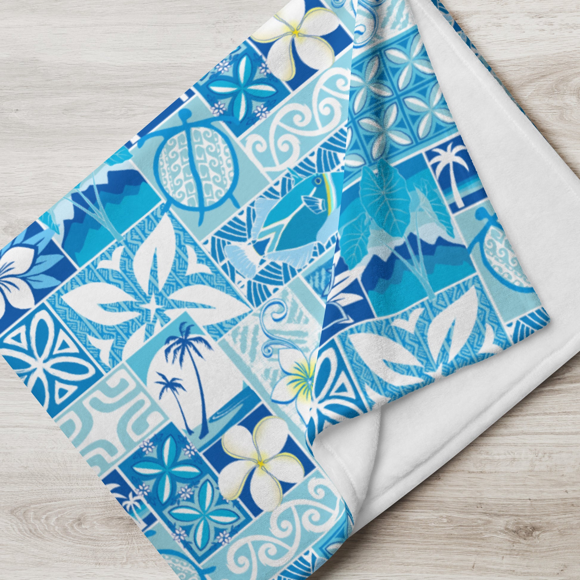 Blue Hawaiian Motif Throw Blanket