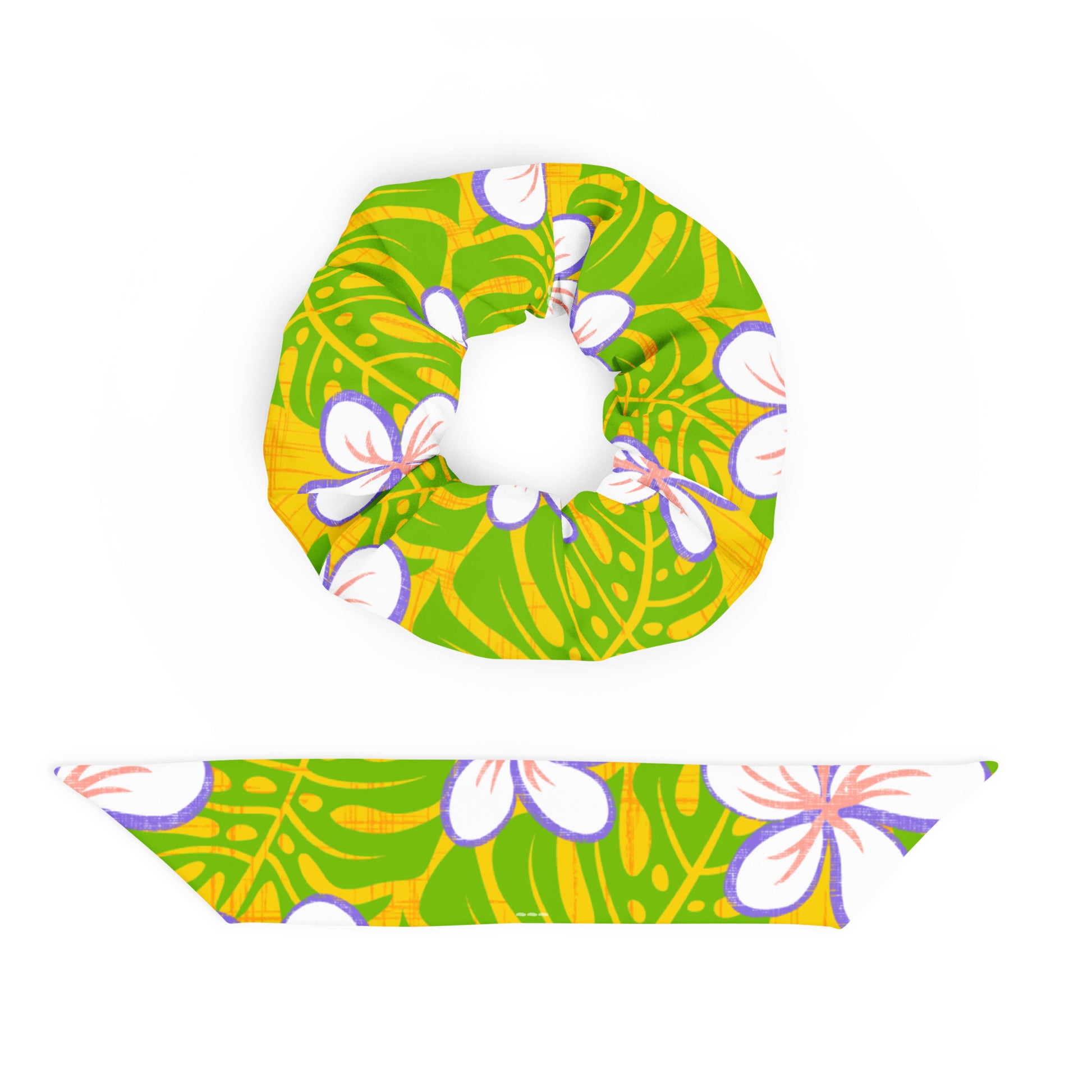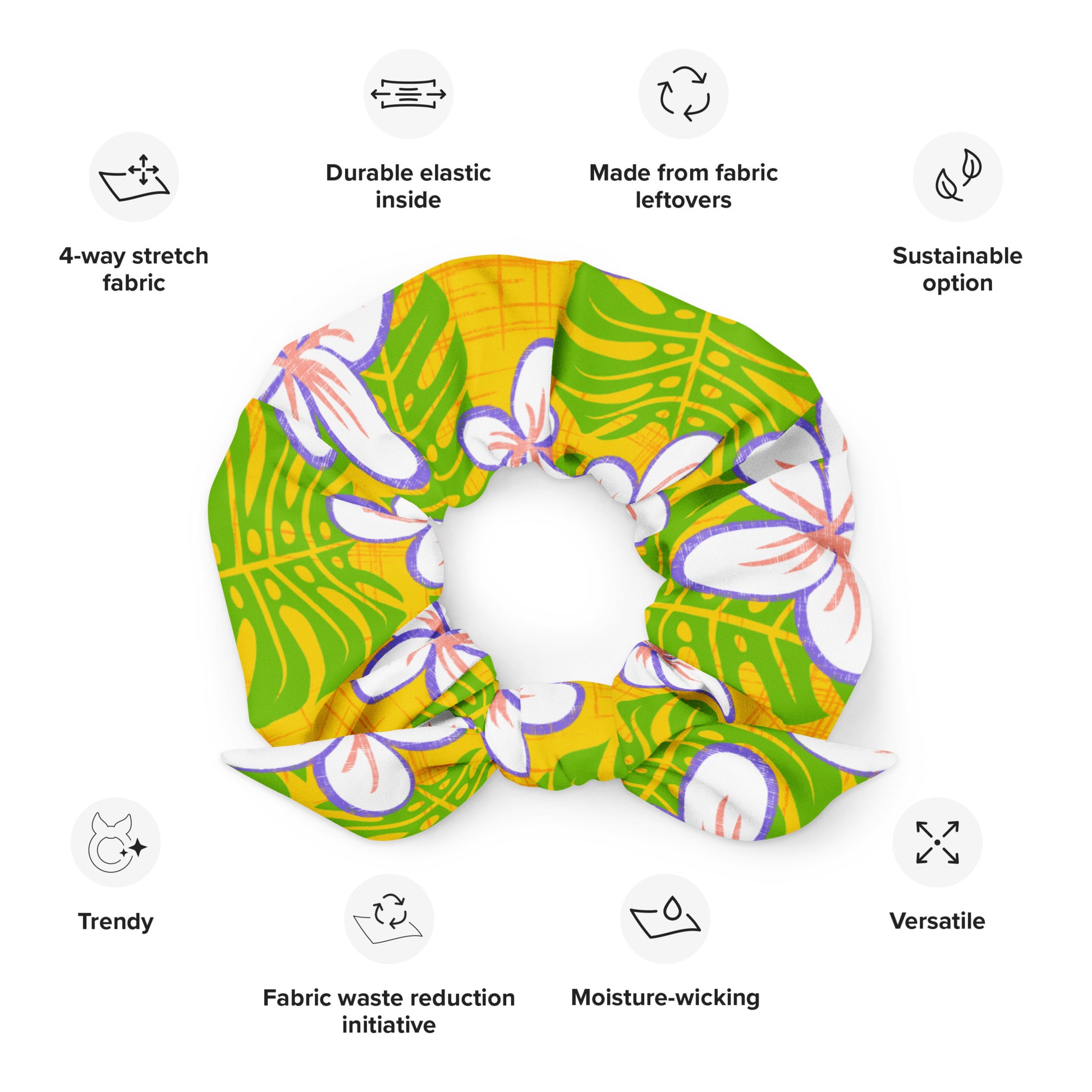 Bring a little extra springtime joy into your life with this recycled scrunchie! Featuring bright and happy colors, it's perfect for adding a cheerful touch to your essential everyday look.