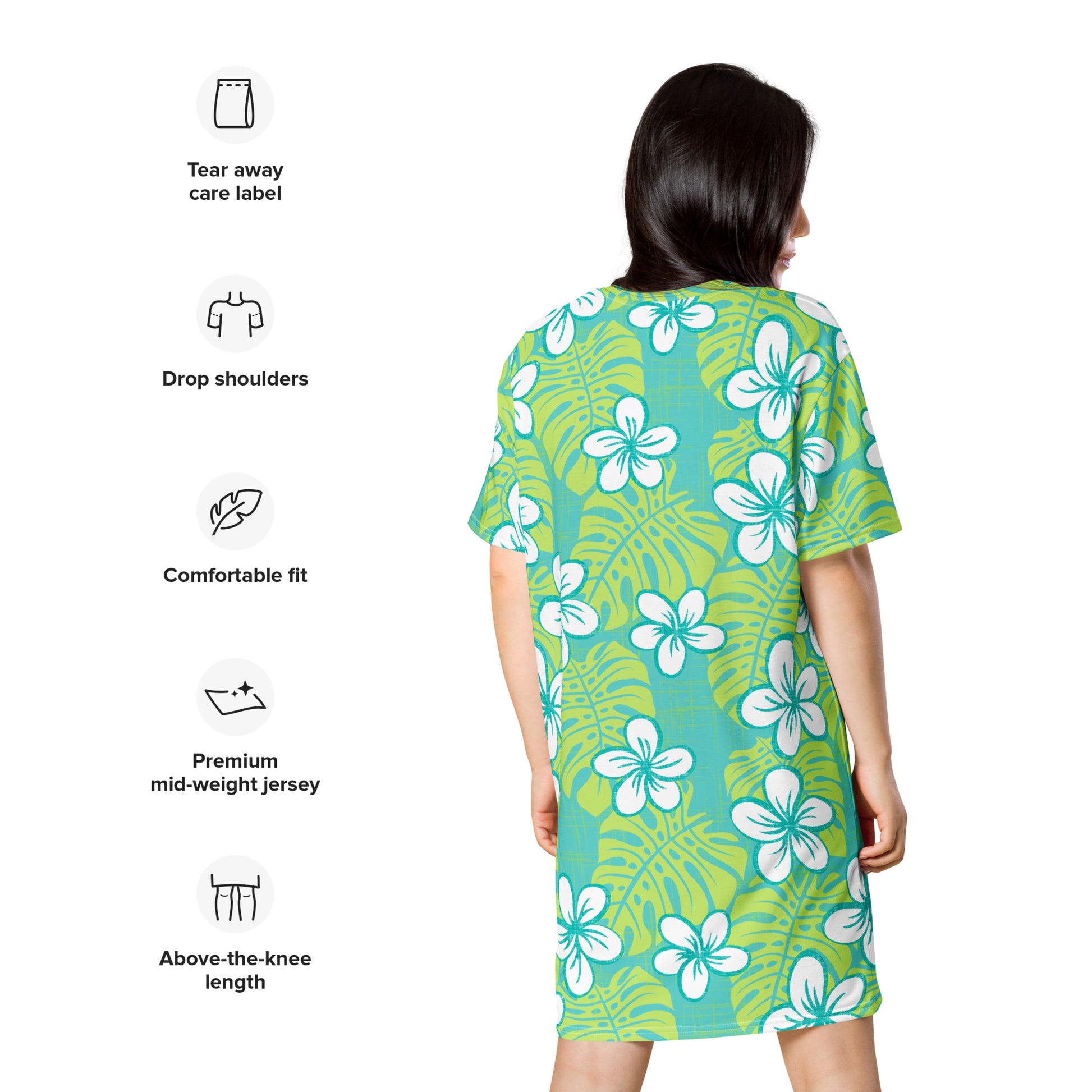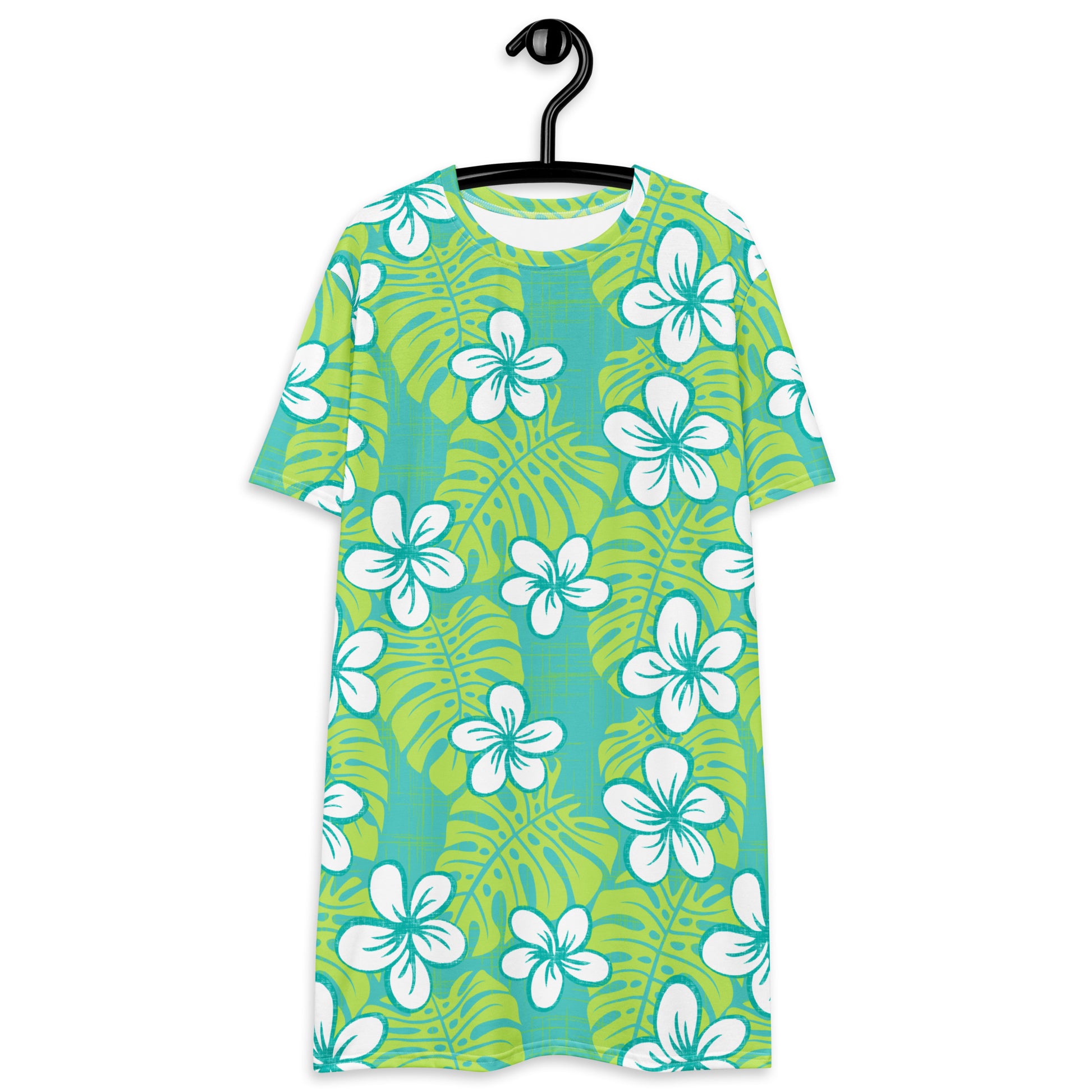 Let loose in this breezy, floral T-shirt-muumuu! Perfect for those days you want to feel Hawaiian, the Faded Green Garden T-shirt dress is the ultimate chillaxing outfit. Its eclectic style is sure to be a hit at luaus, parties and barbecues alike! Aloha!