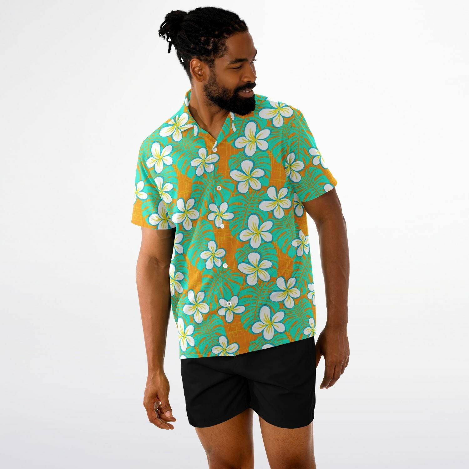 Ready to hit the Megabowl? Get into the island vibes with our 'Get Tropical' Button-Down Shirt. Everybody love everybody!