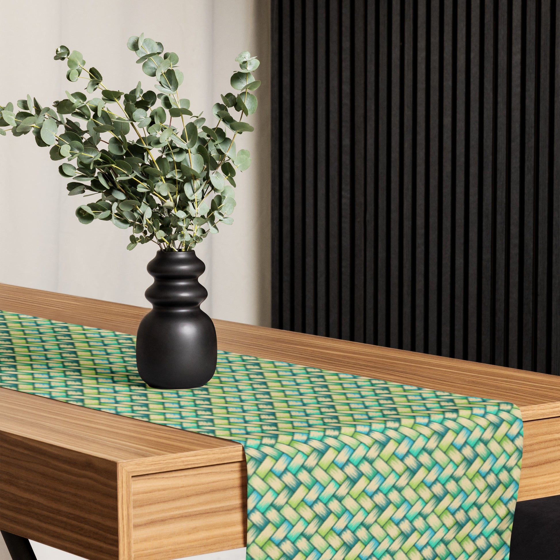 Make a statement with this eye-catching Green Palm Weave Table Runner. Its faux natural composition and cool colors act as the perfect backdrop for any summer gathering. Its unique woven palm pattern adds a delightful tropical touch.