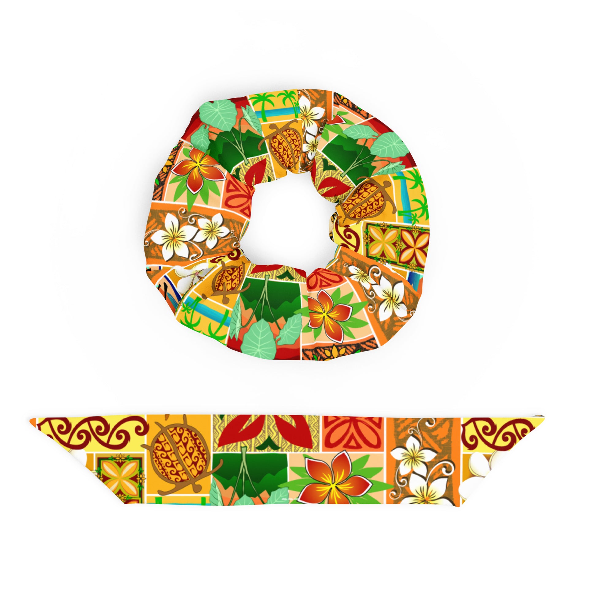 Bring the aloha spirit to your accessory wardrobe with this Hawaiian Motif Recycled Scrunchie! From island flair to warm colors, this scrunchie is the perfect way to add a touch of paradise to your day. Super sustainable and effortlessly chic, you won't want to miss out on this one! Party in the tropics!