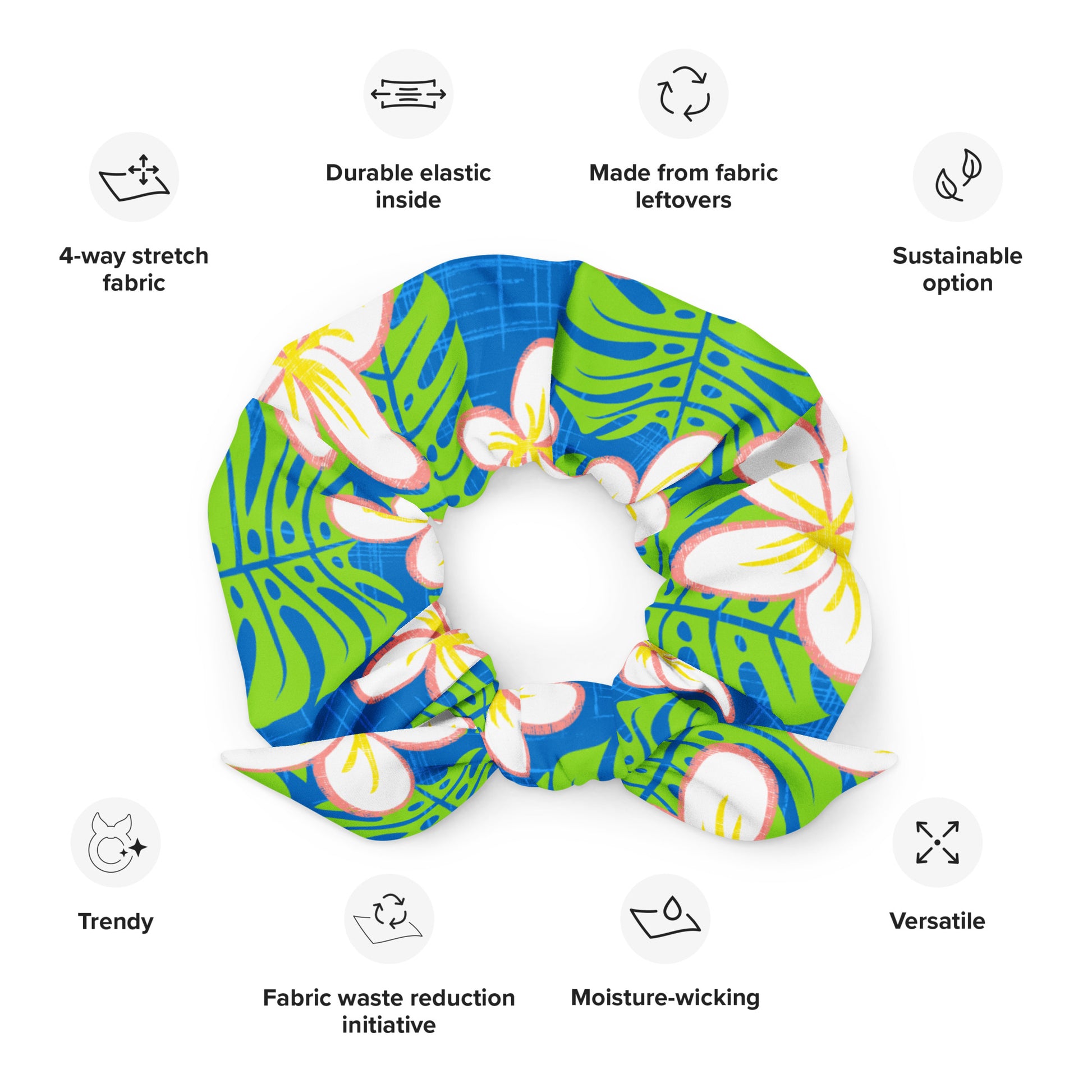 Say hello to summer vibes with the Honolulu Holiday Recycled Scrunchie! This tropical-style accessory is a great way to add a pop of color to any outfit. Featuring a beautiful combination of blue and green, this vibrant scrunchie is the perfect way to start your summer adventures!