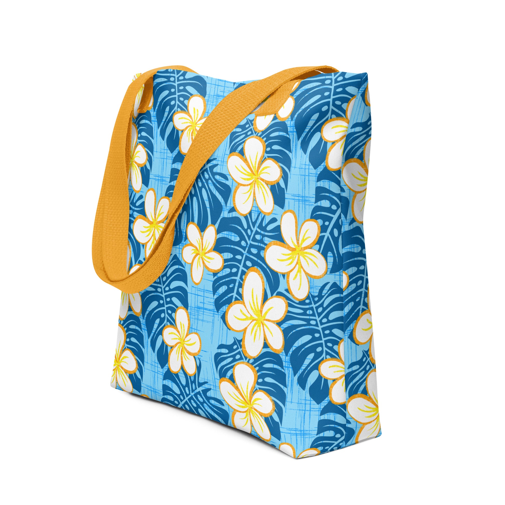 This Innabloo Mood Tote bag is a floral paradise! Featuring a bright blue with whimsical Hawaiian flowers, it's perfect for anyone with a free spirit and sunny disposition. So flower power on and get ready to toe the line to tropical vibes!