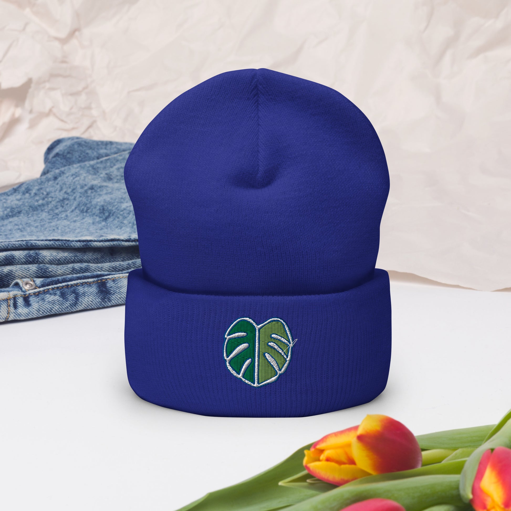 Monstera Leaf Cuffed Beanie