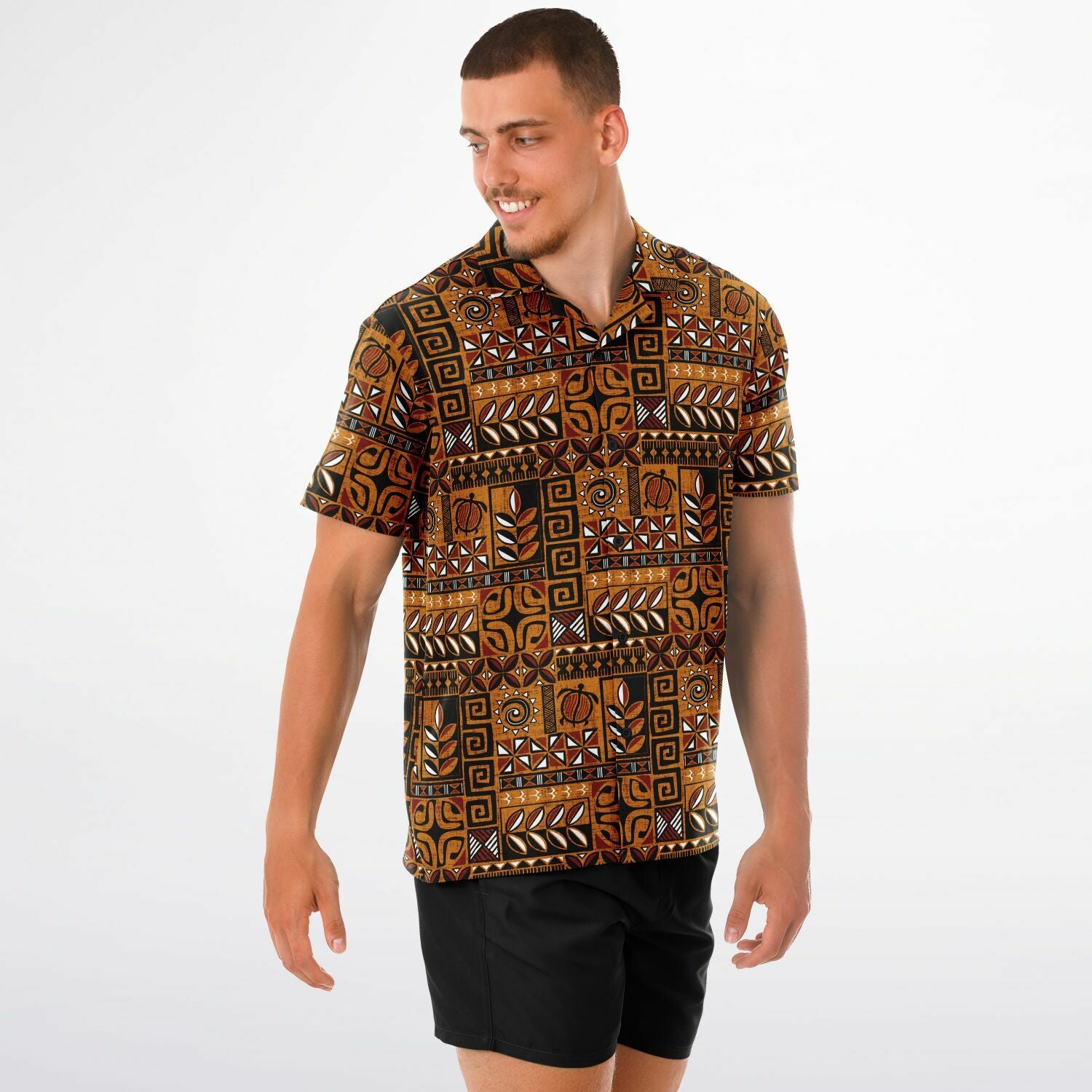 Ditch the traditional and spice up your wardrobe with the 'Polynesie Pop' Short Sleeve Button-Down Shirt. Inspired by Pacific islands and infused with modern style, this shirt is sure to turn heads. With tapa-inspired details, you'll be the trendsetter of the season.