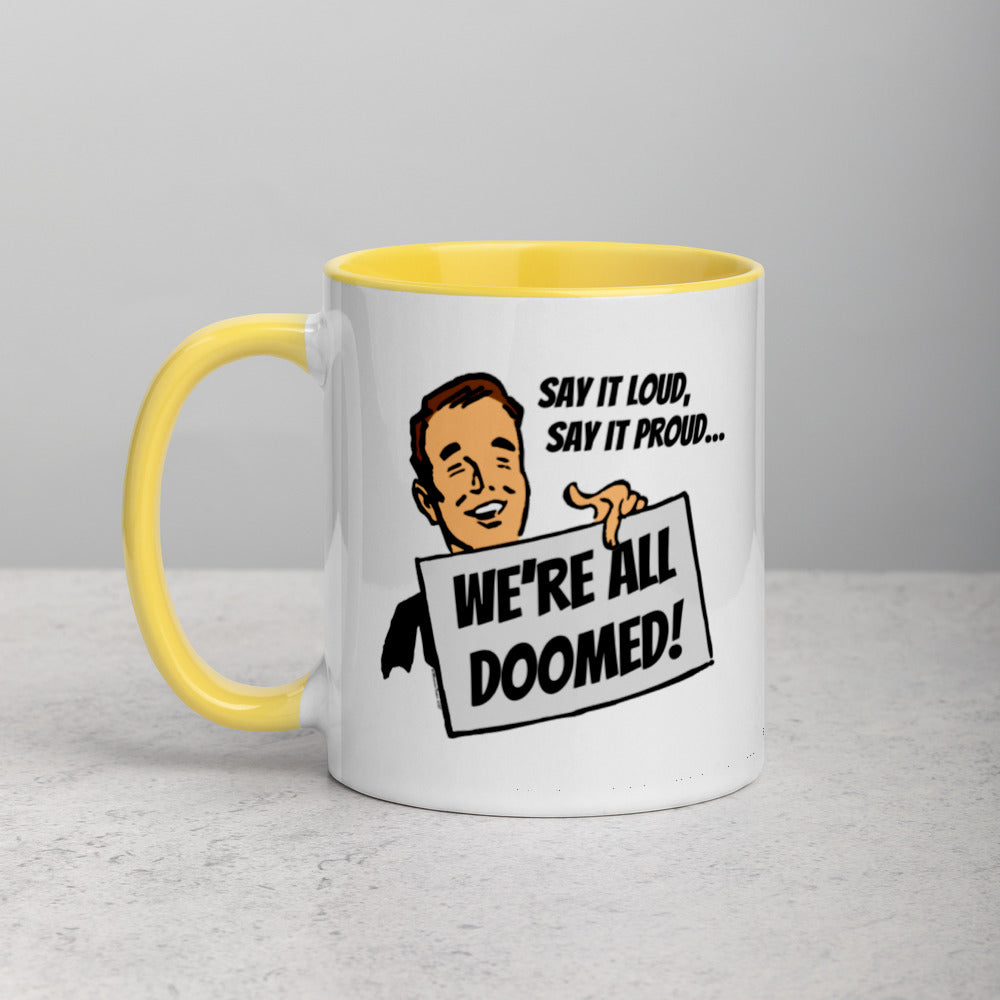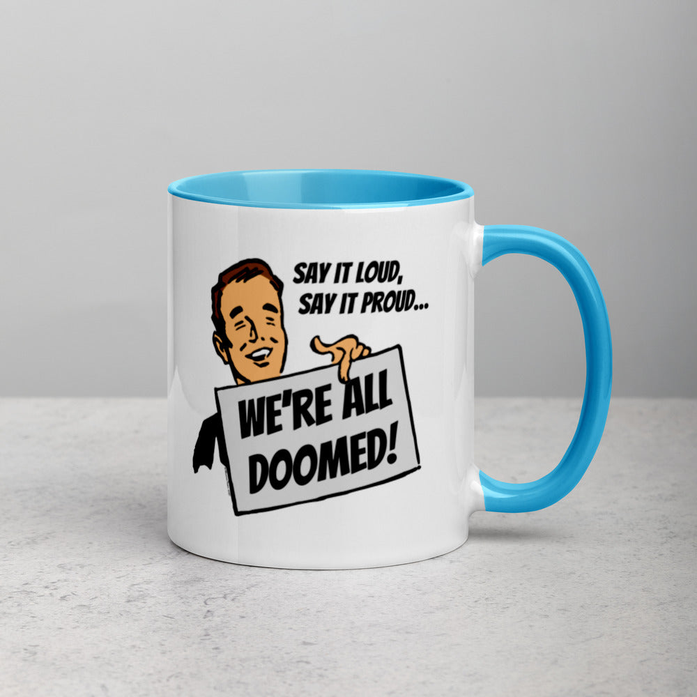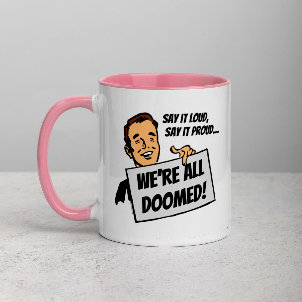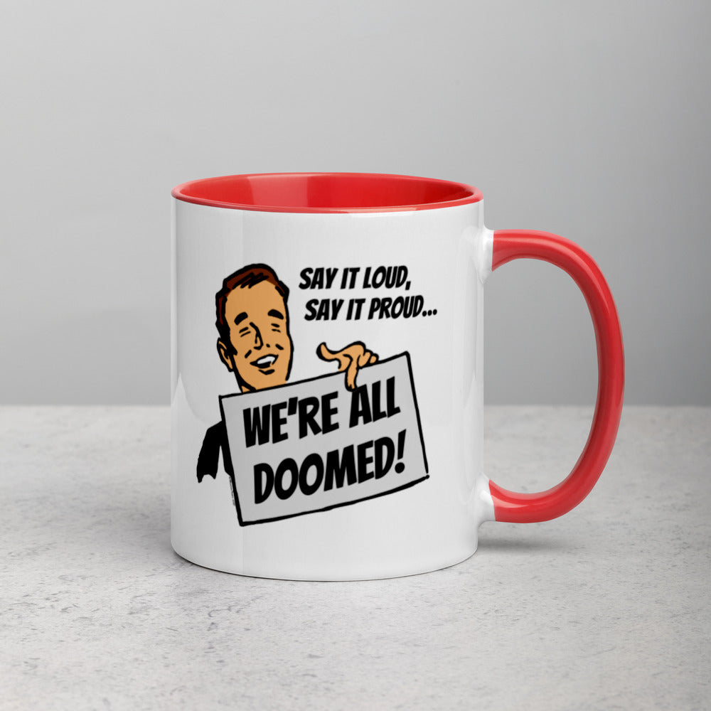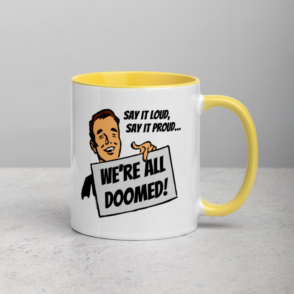 Proudly add a splash of color to your morning coffee or tea ritual! These ceramic mugs not only have a beautiful design on them, but also a colorful rim, handle, and inside, so the mug is bound to spice up your mug rack. We're doomed!
