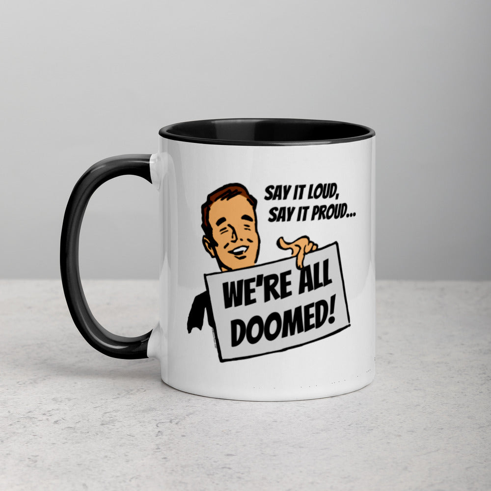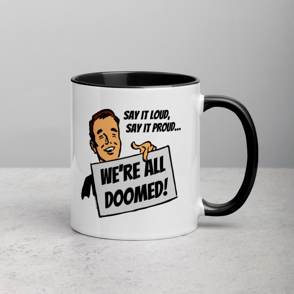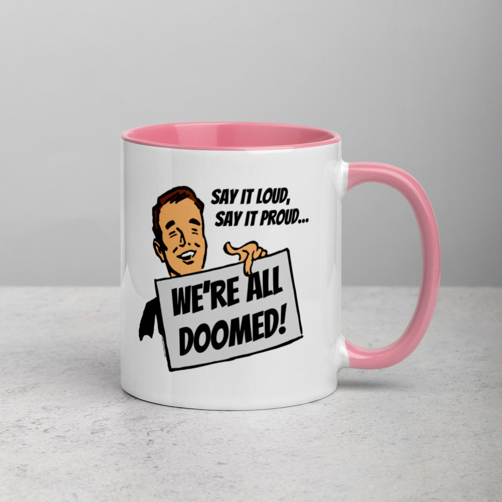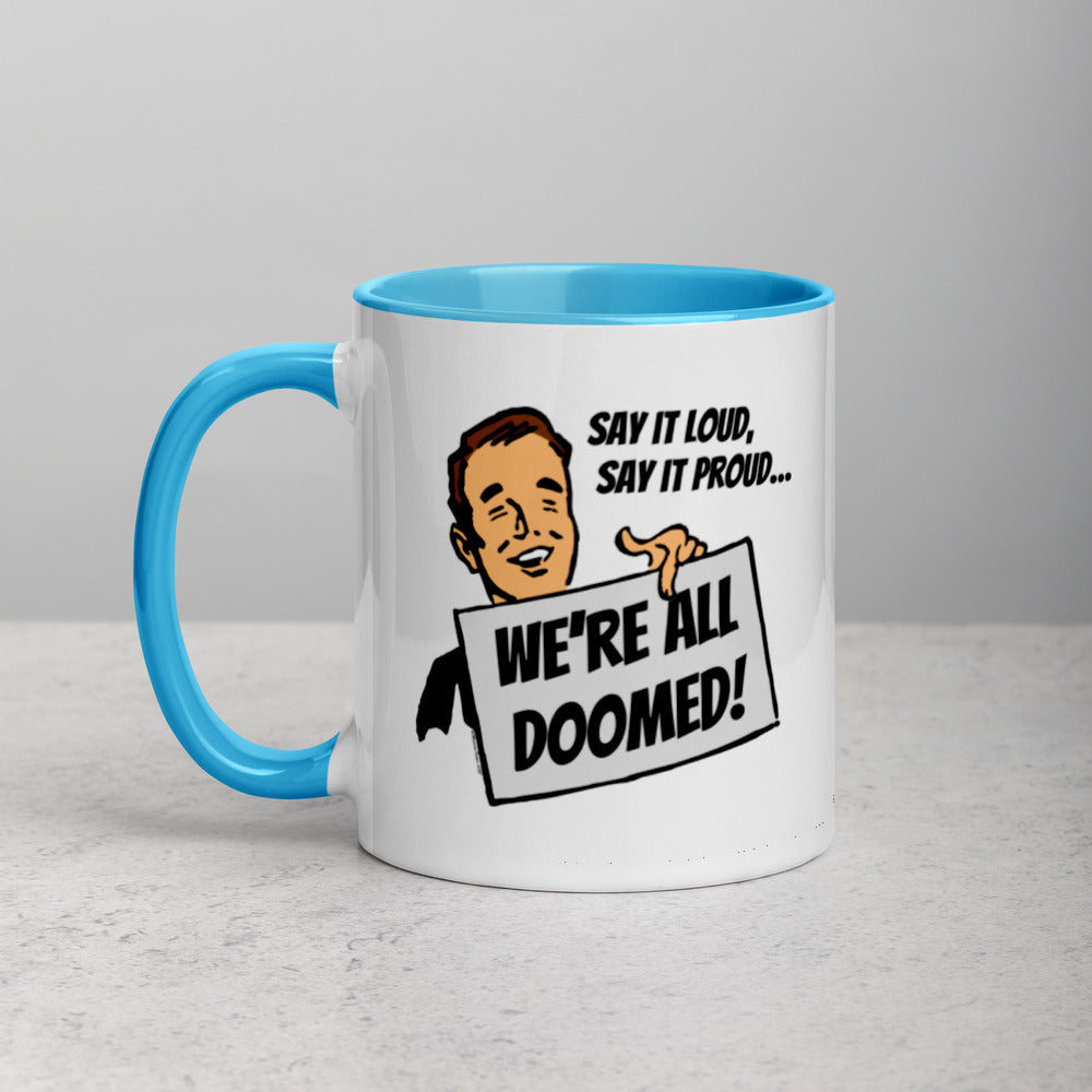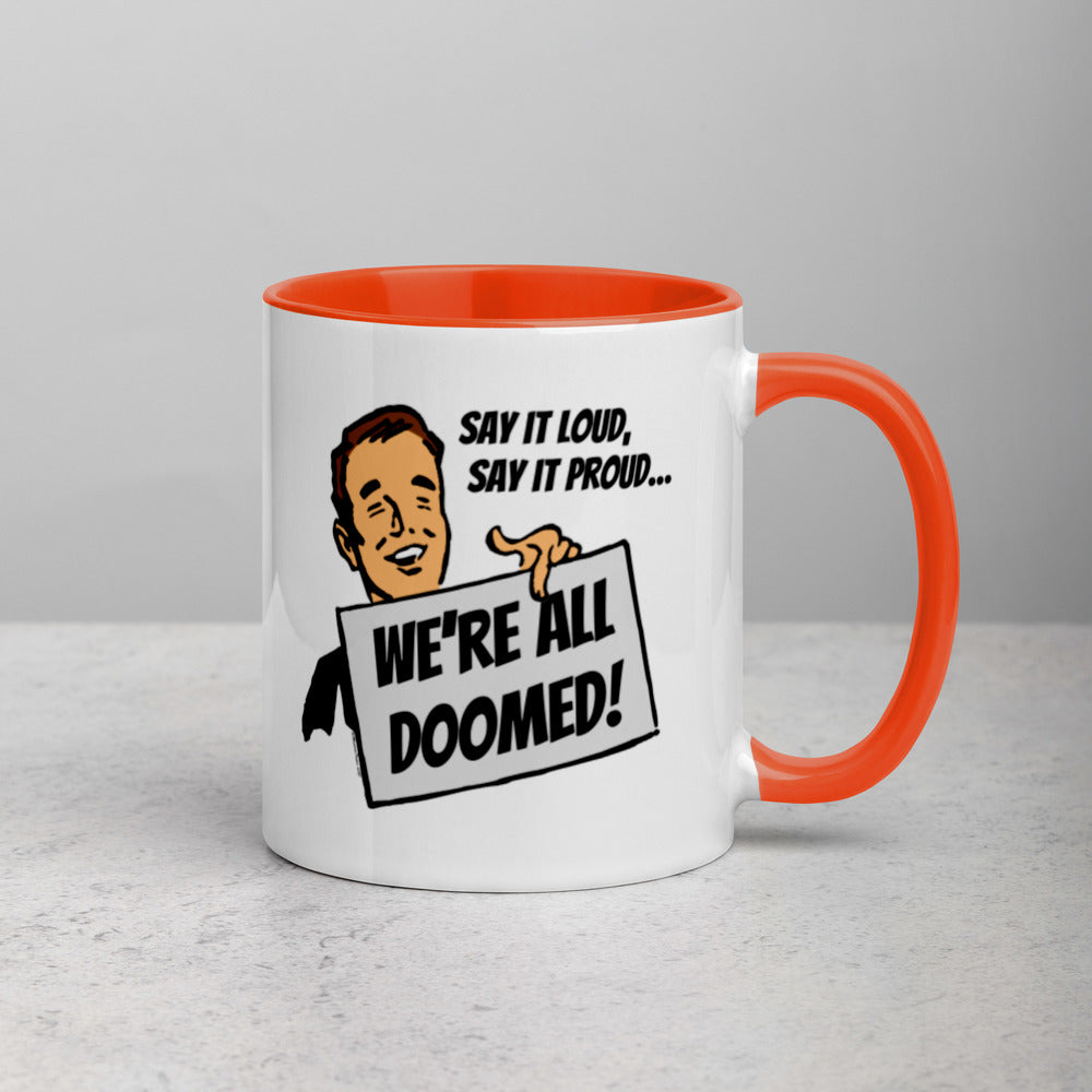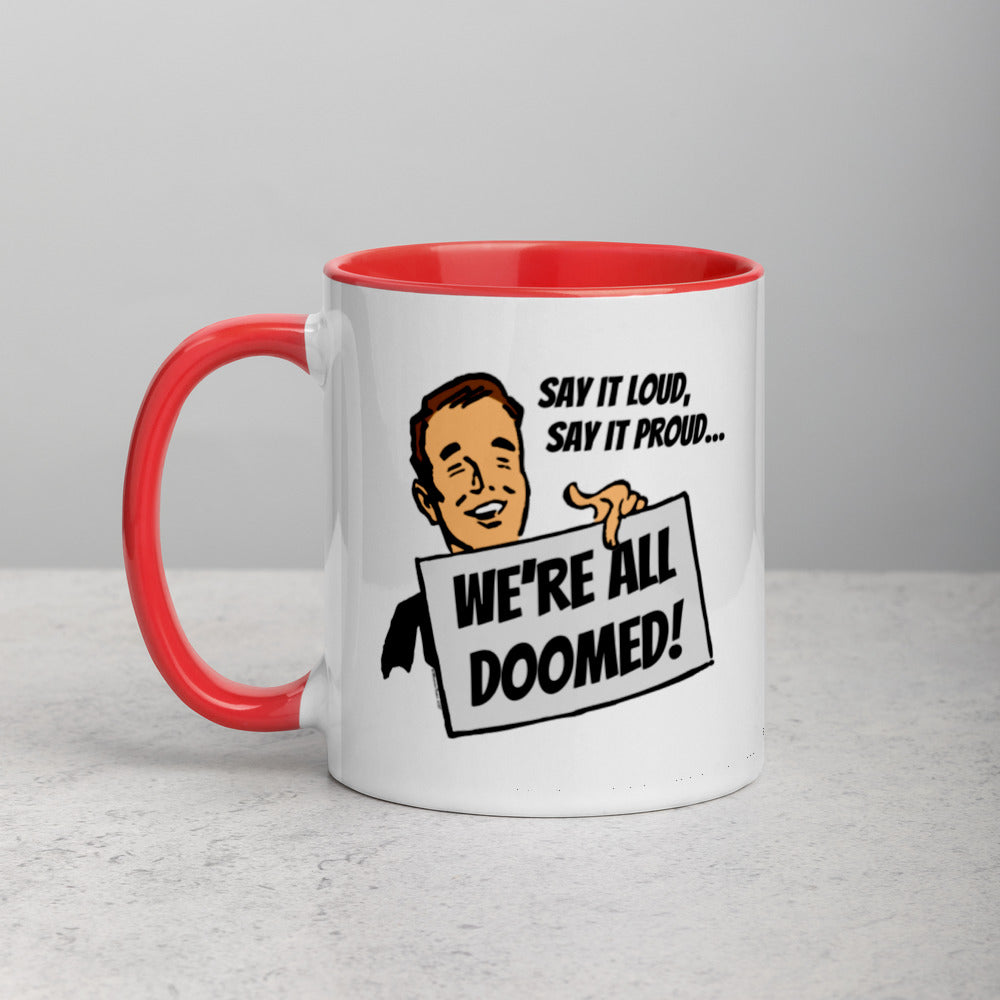 Proudly add a splash of color to your morning coffee or tea ritual! These ceramic mugs not only have a beautiful design on them, but also a colorful rim, handle, and inside, so the mug is bound to spice up your mug rack. We're doomed!