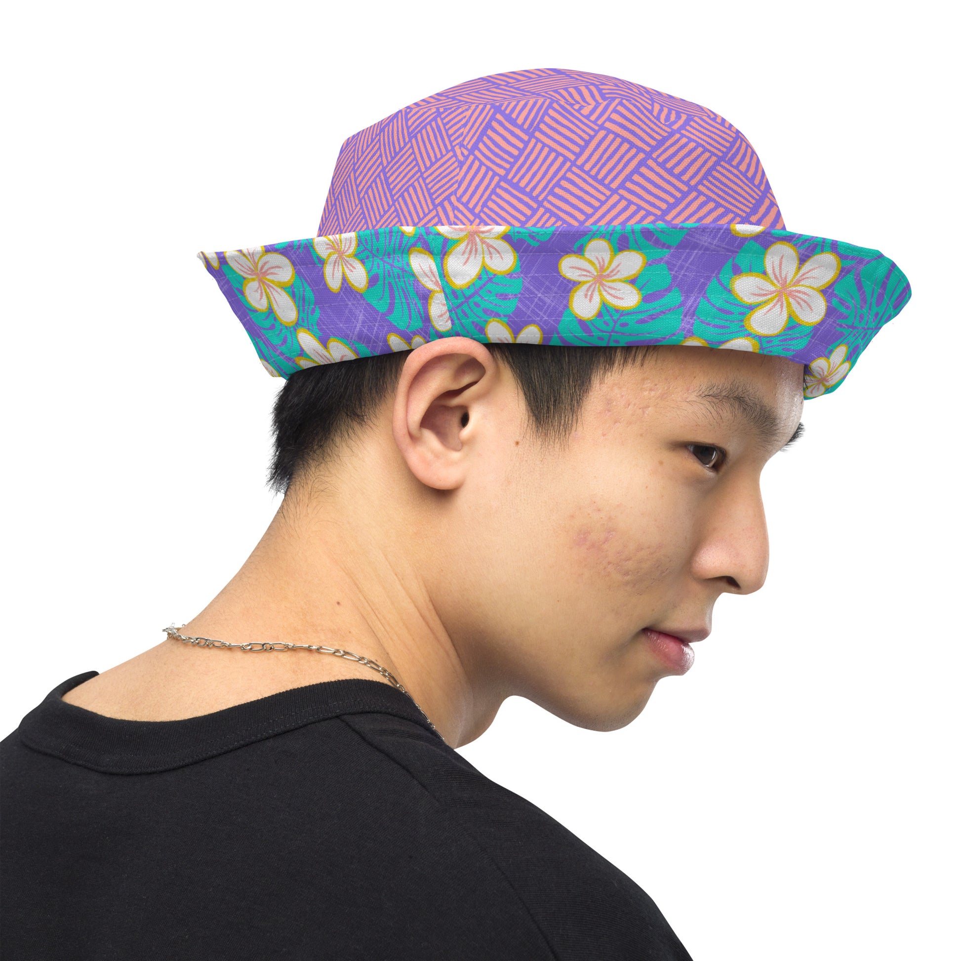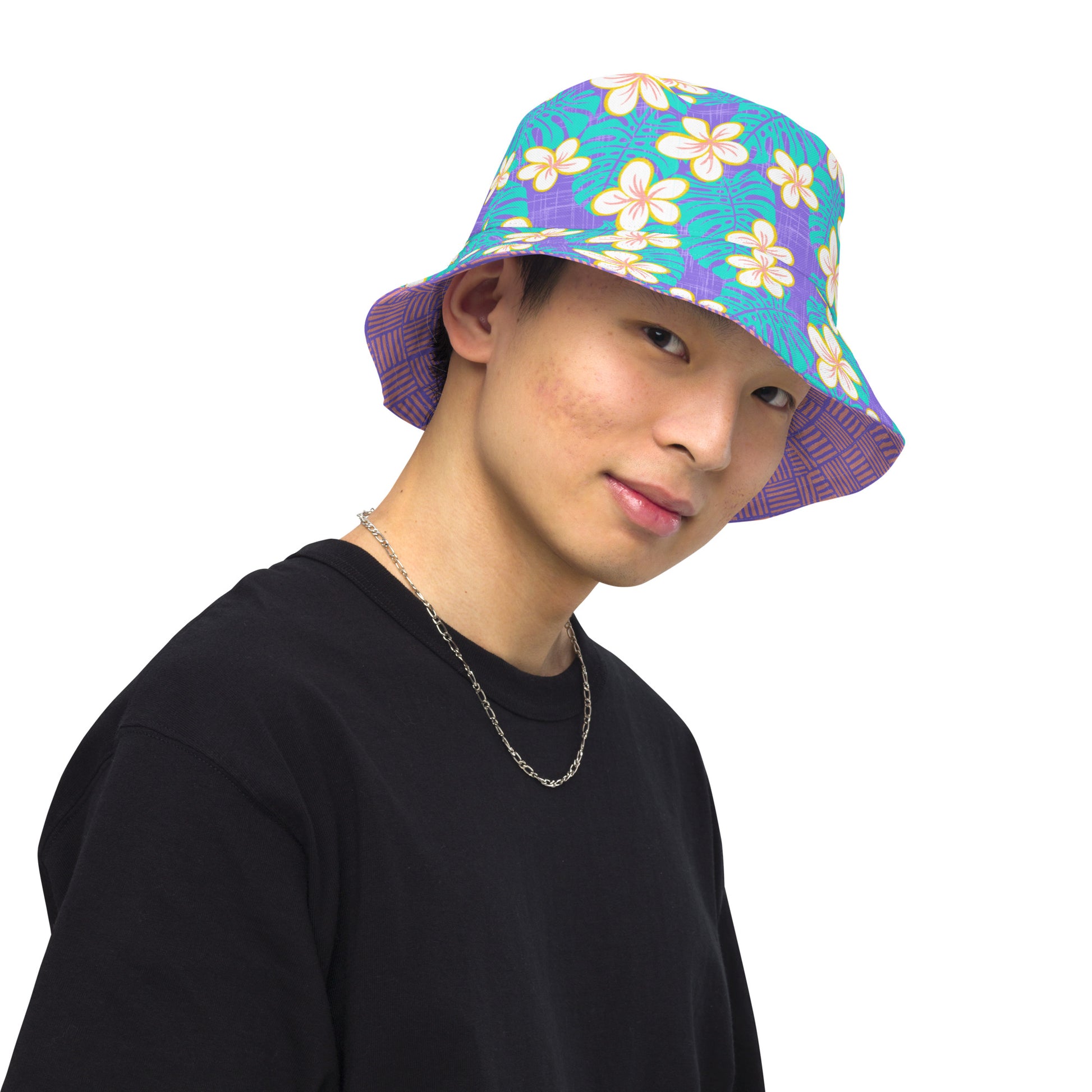 Make a splash in this stylish, reversible Ube Blue Coral Weave bucket hat! Featuring a fun tropical pattern in bright blue and purple, this hat is sure to turn heads. Feel confident and look great wherever you go!