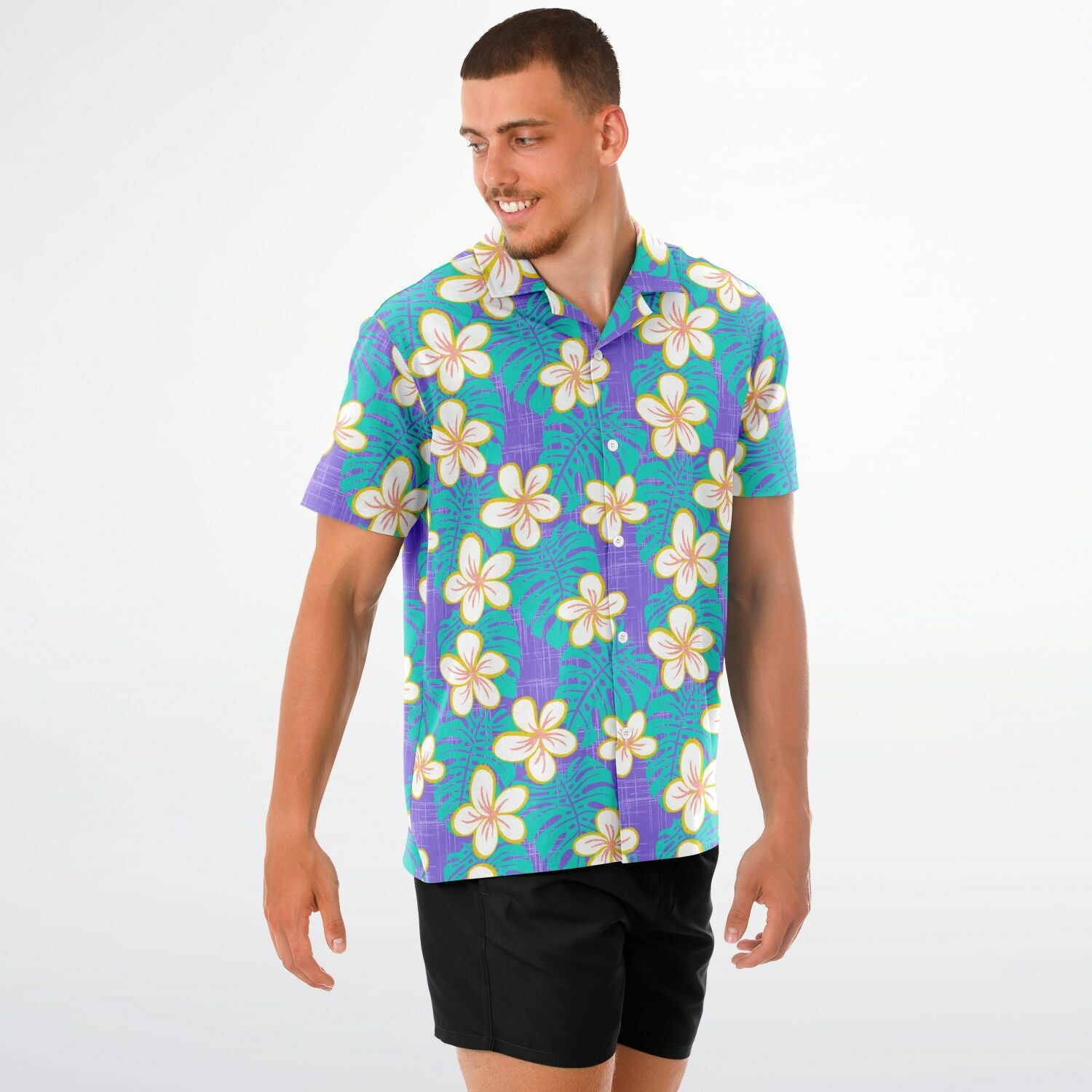 'Ube Blue' Short Sleeve Button-Down Shirt